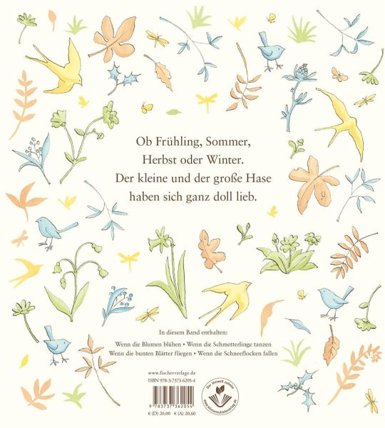 Der kleine und der große Hase haben sich das ganze Jahr lieb. Ob im Frühling, wenn der kleine Hase staunend beobachtet, wie alles wächst, oder im Sommer, wenn die bunten Blumenwiesen zum Spielen einladen. Zusammen mit dem großen Hasen läuft der kleine Hase mit den fliegenden Herbstblättern um die Wette. Und auch im Winter, wenn die Schneeflocken fallen, haben die beiden jede Menge Spaß.