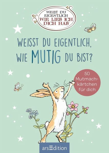 Kinder brauchen unsere Ermutigung, um ihre Stärken zu erkennen und Herausforderungen zu meistern. Diese zauberhafte Kartenbox enthält 50 liebevolle Botschaften, die Mut schenken und das Selbstvertrauen von unseren Lieblingen stärken. Zieh jeden Tag eine Karte, lies sie laut vor und sprecht gemeinsam über die Botschaft. Die herzerwärmenden Illustrationen der weltbekannten "Weißt du eigentlich, wie lieb ich dich hab?"-Hasen und die einfühlsamen Affirmationen ermutigen Kinder ab 3 Jahren, an sich zu glauben und auf ihr Herz zu hören.