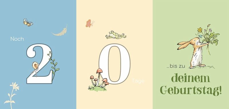 Niedlicher Wartezeitverkürzer: Einzigartiger Countdown-Aufsteller für Kinder mit den beliebten "Weißt du eigentlich, wie lieb ich dich hab"-HasenSchönes tägliches Ritual:Einfaches Umklappen und kinderleichtes Tagezählen fördern die Vorfreude auf besondere Ereignisse wie erster Schultag, Chanukka, Ostern, Halloween und mehrSpielerisch lernen: Hilft Kindern ab 6 Jahren, das Thema Zeit einfach und schnell zu verstehenHochwertige Ausstattung: Das stabile Aufstellbuch mit 3 Teilen zum Umklappen passt in jedes Kinderzimmer und ist eine tolle Deko