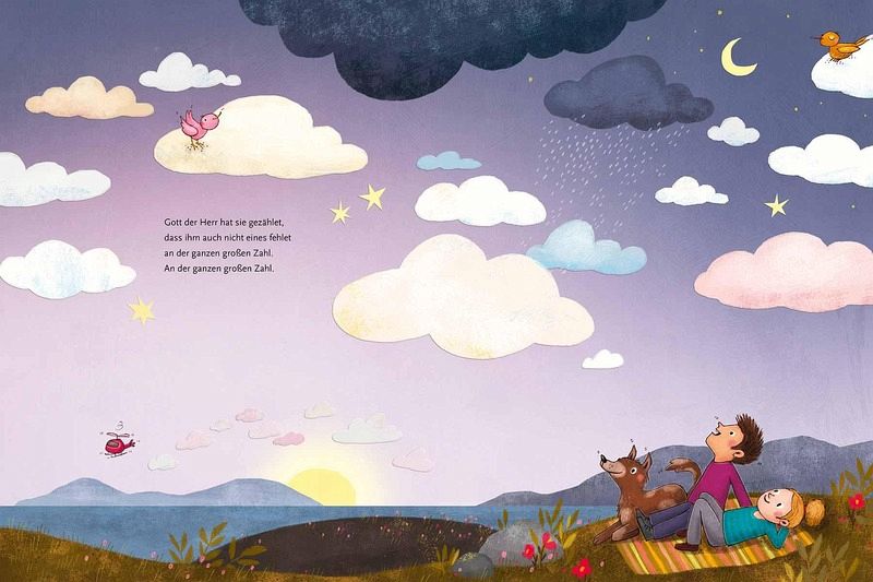 »Weißt du, wie viel Sternlein stehen ...« Schon die ersten Zeilen lassen die unvergessliche Melodie erklingen, die die meisten aus ihrer Kindheit kennen und wohl heute noch (vor)singen, summen oder pfeifen. Pe Grigo hat dieses bekannte Wiegenlied aus der Feder Wilhelm Heys mit ihren Illustrationen neu interpretiert und lässt die Verse in neuem Sternenglanz erstrahlen.