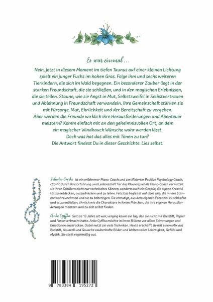 Es war einmal ...Nein, jetzt in diesem Moment im tiefen Taunus auf einer kleinen Lichtung spielt ein junger Fuchs im hohen Gras. Folge ihm und sechs weiteren Tierkindern, die sich im Wald begegnen. Ein besonderer Zauber liegt in der starken Freundschaft, die sie schließen, und in den magischen Erlebnissen, die sie teilen. Staune, wie sie Angst in Mut, Selbstzweifel in Selbstvertrauen und Ablehnung in Freundschaft verwandeln. Ihre Gemeinschaft stärken sie mit Fürsorge, Mut, Ehrlichkeit und der Bereitschaft zu vergeben. Aber werden die Freunde wirklich ihre Herausforderungen und Abenteuer meistern? Komm einfach mit an den geheimnisvollen Ort, an dem ein magischer Windhauch Wünsche wahr werden lässt. Doch was hat das alles mit Tönen zu tun? Die Antwort findest Du in dieser Geschichte. Lies selbst. - Möge diese Geschichte ein Lächeln auf Dein Gesicht zaubern und Dich dazu inspirieren, Freude, Staunen, Mut, Hoffnung, Intuition und ein wenig Humor in Dein Leben einzuladen. Und vielleicht wird in Dir die Sehnsucht wach, selbst Musik zu machen.