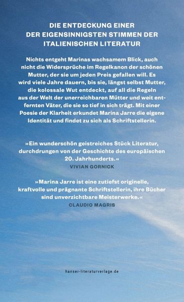 Für Rezensentin Sarah Elsing ist es ein Glück, die Bücher der in Riga geborenen, im Piemont aufgewachsenen Marina Jarre zu lesen. Jarre erzählt ihre komplexe Familiengeschichte als Schicksal des 20. Jahrhunderts zwischen Holocaust und Flucht, Entwurzelung und Fremdheit, so Elsing. Wie die Mutter der Autorin das Leben rettete, indem sie sie zur Großmutter ins Piemont gab, berichtet die Autorin laut Elsing in einer poetischen, dennoch klaren Sprache. Jarres Geschichte ist emblematisch für den Zustand des modernen Menschen, findet die Rezensentin, der Leser identifiziert sich schnell mit der Protagonistin.