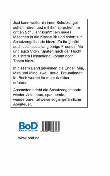 Josi kann ihren Schutzengel Mia sehen, mit ihm Sprechen und hören. Inzwischen können auch Tabea und Mo ihre Schutzengel sehen, hören und mit ihnen sprechen. Die Schutzengelbande, zu der auch noch Vicky gehört, ist somit sehr reich geworden. Denn durch die Tatsache, dass nun drei Engel dazugehören, haben sie sehr viel mehr Möglichkeiten anderen zu helfen, Hilfebedürftige aufzuspüren und ihnen Hilfe zukommen zu lassen.Auch im dritten Schuljahr erleben die Kinder wieder wunderbare spannende Abenteuer. Seid gespannt, auf das, was jetzt im dritten Schuljahr passiert.