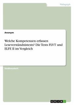Studienarbeit aus dem Jahr 2020 im Fachbereich Pädagogik - Leseerziehung, Note: 2,0, Bergische Universität Wuppertal, Sprache: Deutsch, Abstract: In meiner Hausarbeit werde ich mich mit dem Begriff der Lesekompetenz auseinandersetzen und diese kurz erläutern. Danach erfolgt der Fokus auf den Terminus des Leseverständnisses, indem ich diesen Begriff erläutere. Im weiteren Verlauf werde ich die Tests ELFE II und FLVT 5-6 vorstellen und herausarbeiten, welche Kompetenzen durch den jeweiligen Test trainiert werden. Ein Vergleich der Tests sowie eine Auswertung bildet das Ende dieser Hausarbeit. Heutzutage nimmt das Lesen eine zentrale Bedeutung in unserem Leben ein. Nicht nur für die Schule ist Lesen ein wichtiger Baustein. Im Alltag begegnet der Mensch vielen Texten, um Informationen, Ideen oder kulturelle Aspekte aus diesen zu entnehmen. Aber Lesen ist nicht ausschließlich ein Prozess der Informationsentnahme und Wissensverarbeitung. Hurrelmann formuliert, dass Lesen ein wichtiger Prozess zur kulturellen Teilhabe ist. Durch die PISA-Studie wurde gezeigt, dass die Lesekompetenz eines 15-jährigen Schülers in Deutschland im internationalen Vergleich unter dem Durchschnitt liegt. Wie lässt sich dies erklären? In der weiteren Untersuchung zeigte PISA, dass die SuS ein derartiges niedriges Lesekompetenzniveau aufweisen, sodass eine erfolgreiche Berufsausbildung fraglich erscheint. So zogen Didaktiker und Forscher daraus ihre Schlüsse und legten fest, dass entsprechende Fördermaßnahmen eingesetzt werden müssen.
