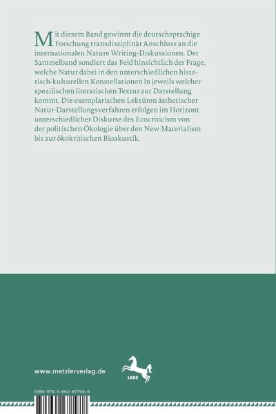Mit diesem Band gewinnt die deutschsprachige Forschung transdisziplinär Anschluss an die internationalen Nature Writing-Diskussionen. Der Sammelband sondiert das Feld des Nature Writing hinsichtlich der Frage, welche Natur dabei in den unterschiedlichen historisch-kulturellen Konstellationen in jeweils welcher spezifischen literarischen Textur zur Darstellung kommt. Programmatisch-konzeptionell stehen damit nicht zuletzt die (möglicherweise verdeckt normativen) Naturvorstellungen des klassischen und rezenten Nature Writing zur Diskussion. Dies wird in exemplarischen Lektüren untersucht, etwa, indem die Kategorien einer 'unberührten' Natur bzw. des 'Wilden' - auch im Kontext des sogenannten Rewilding - problematisiert oder aber die ästhetisch geformte Darstellung zivilisatorisch veränderter, sei es anthropogen zerstörter, sei es gärtnerischer gestalteter Natur analysiert wird. Präsentiert werden Beiträge aus amerikanistischer, germanistischer, philosophischer und biologiegeschichtlicher Perspektive zu prominenten Vertreter_innen des englischsprachigen Nature Writing (Henry David Thoreau, Val Plumwood u.a.) ebenso wie zu indigenem Natur-Wissen (Robin Wall Kimmerer) und zu Werken deutschsprachiger naturaffiner Autor_innen der Tradition (Adalbert von Chamisso) und Gegenwart (z.B. Ulrike Draesner, Esther Kinsky und W.G. Sebald). Die Untersuchungen ästhetischer Natur-Darstellungsverfahren erfolgen in close readings sowie im Horizont von politischer Ökologie, New Materialism, Ecocriticism, den seit geraumer Zeit gerade in England geführten Diskussionen zu Möglichkeiten und Grenzen eines New Nature Writing und den jüngsten Bestrebungen, die verschüttete Linie eines deutschsprachigen Nature Writing zu rekonstruieren.