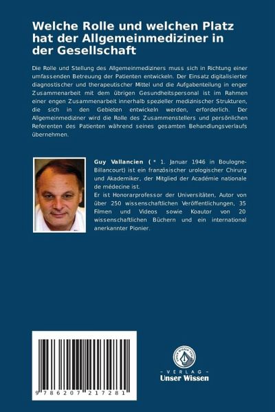 Die Rolle und Stellung des Allgemeinmediziners muss sich in Richtung einer umfassenden Betreuung der Patienten entwickeln. Der Einsatz digitalisierter diagnostischer und therapeutischer Mittel und die Aufgabenteilung in enger Zusammenarbeit mit dem übrigen Gesundheitspersonal ist im Rahmen einer engen Zusammenarbeit innerhalb spezieller medizinischer Strukturen, die sich in den Gebieten entwickeln werden, erforderlich. Der Allgemeinmediziner wird die Rolle des Zusammenstellers und persönlichen Referenten des Patienten während seines gesamten Behandlungsverlaufs übernehmen.