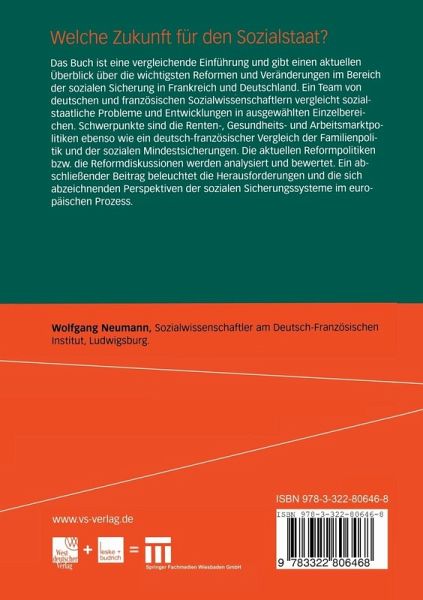 Ein Team von deutschen und französischen Sozialwissenschaftlern vergleicht sozialstaatliche Probleme und Entwicklungen in ausgewählten Einzelbereichen. Schwerpunkte sind die Renten-, Gesundheits- und Arbeitsmarktpolitiken ebenso wie ein deutsch-französischer Vergleich der Familienpolitik und der sozialen Mindestsicherungen. Die aktuellen Reformpolitiken bzw. die Reformdiskussionen werden analysiert und bewertet. Ein abschließender Beitrag beleuchtet die Herausforderungen und die sich abzeichnenden Perspektiven der sozialen Sicherungssysteme im europäischen Prozess.