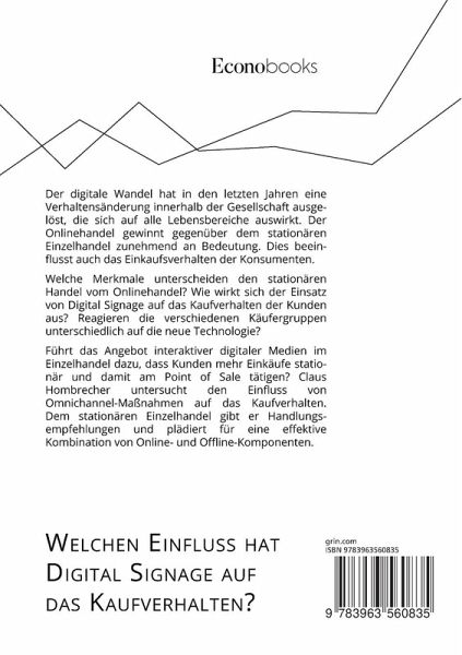 Der digitale Wandel hat in den letzten Jahren eine Verhaltensänderung innerhalb der Gesellschaft ausgelöst, die sich auf alle Lebensbereiche auswirkt. Der Onlinehandel gewinnt gegenüber dem stationären Einzelhandel zunehmend an Bedeutung. Dies beeinflusst auch das Einkaufsverhalten der Konsumenten. Welche Merkmale unterscheiden den stationären Handel vom Onlinehandel? Wie wirkt sich der Einsatz von Digital Signage auf das Kaufverhalten der Kunden aus? Reagieren die verschiedenen Käufergruppen unterschiedlich auf die neue Technologie? Führt das Angebot interaktiver digitaler Medien im Einzelhandel dazu, dass Kunden mehr Einkäufe stationär und damit am Point of Sale tätigen? Claus Hombrecher untersucht den Einfluss von Omnichannel-Maßnahmen auf das Kaufverhalten. Dem stationären Einzelhandel gibt er Handlungsempfehlungen und plädiert für eine effektive Kombination von Online- und Offline-Komponenten. Aus dem Inhalt:-Stationärer Handel;-Customer Journey;-Onlinehandel;-Personalisierung;-Showrooming;-Digitalisierung
