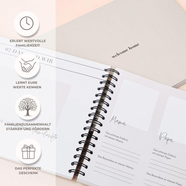Wann hast du das letzte Mal mit deinen Großeltern gesprochen und wie viel weißt du eigentlich von ihrer Vergangenheit? Das Familienbuch soll einen Anlass bieten, sich intensiv und auf spielerische Weise mit der eigenen Familie auseinanderzusetzen. Mithilfe von Fragen können sich all deine Familienmitglieder verewigen und die schönsten gemeinsamen Momente mit dir teilen. Doch nicht nur Blutsverwandte sind hier willkommen. Manchmal haben wir das große Glück, enge Freunde oder Nachbarn als Familie zu begrüßen. Ob gemeinsam am Tisch oder allein in einer ruhigen Minute bei einer Familienfeier - in diesem Buch werden Geheimnisse enthüllt und Erinnerungen lebendig gemacht.