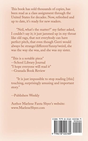 A fictional account of a family's struggle to adapt to the homecoming of a 13 year-old child with developmental disabilities, it's written from her younger brother's point of view. There are ongoing problems but despite the frustrations and anxiety, there is humor --and drama--throughout. The end is realistic, not exactly happy, but the book ends on a positive note. This book, which was originally published in 1978, is an updated version of a popular children's classic, taught in elementary schools and published in many languages. It inspired a TV movie and a board game, was sold in bookstores throughout the United States and was available in most American libraries with a children's book section. The theme of what is no longer called "retarded" is now known by many other names: autistic, mentally challenged, neurodivergent, mentally challenged, and so on. It is especially relevant today. today.
