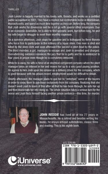 Josh Londer is happily married to his lovely wife, Brenda, and works as a certified public accountant in 1981. They have a modest but comfortable home in Morristown, Massachusetts, and spend as much time together as they can. Before long, the company that Josh works for downsizes and he is let go with several other employees. Due to an economic downslide, he is able to find sporadic work, but before long, he and his wife begin to struggle to meet their monthly expenses. On a summer afternoon, Josh stops for gasoline and is kidnapped by three thieves who force him to participate in the robbery of a liquor store. One man is shot and killed by the store clerk and soon afterward the second is shot dead by the police. The third member, a girl, manages to escape and Josh is arrested and charged. Overwhelming evidence convinces the jury that he is guilty and he is sentenced to four years in prison even though he is completely innocent. While he is away, his wife is hired at an electrical component company where the plant manager takes an interest in her and moves her up to a very good paying position. He agrees to hire Josh upon his release as a delivery driver for the company, which is good because with his prison record, employment would be difficult to obtain. Shortly afterward, the manager plans to use her to "entertain" some of the buyers in order to sway them to purchase exclusively from his company. Realizing that she doesn't want Josh to learn of this after all that he has been through, he sets her up and then blackmails her into doing so. The whole situation takes a serious turn for the worse and Josh finds himself facing another prison sentence-this time, for murder.