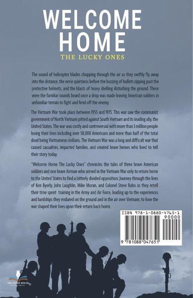 The sound of helicopter blades chopping through the air as they swiftly fly away into the distance, the eerie quietness before the buzzing of bullets zipping past the protective helmets, and the blasts of heavy shelling disturbing the ground. These were the familiar sounds heard once a drop was made leaving American soldiers in unfamiliar terrain to fight and fend off the enemy. The Vietnam War took place between 1955 and 1975. This war saw the communist government of North Vietnam pitted against South Vietnam and its leading ally, the United States. The war was costly and controversial with more than 3 million people losing their lives including over 58,000 Americans and more than half of the total dead being Vietnamese civilians. The Vietnam War was a long and difficult war that caused casualties, impacted families, and created brave heroes who lived to tell their story today. "Welcome Home The Lucky Ones" chronicles the tales of four brave American soldiers who served in the Vietnam War only to return home to the United States to find a bitterly divided opposition. Journey through the lives of Ken Byerly, John Laughlin, Mike Moran, and Colonel Steve Raho as they retell their time spent training in the Army and Air Force, leading up to the experiences and hardships they endured on the ground and in the air over Vietnam, to how the war shaped their lives upon their return back home.