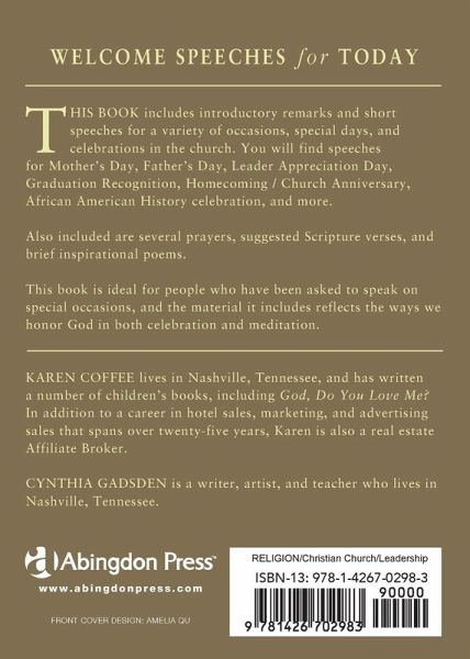Welcome Speeches for Today can be used by laypeople asked to make welcome speeches for a variety of situations and events in the church. Sample speeches and prayers are included that can be used as a prototype for creating a personal welcome speech.
