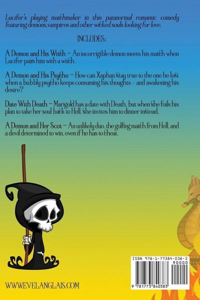 Lucifer's playing matchmaker in this paranormal romantic comedy featuring demons,vampires and other wicked souls looking for love. Includes: A Demon and His Witch - An incorrigible demon meets his match when Lucifer pairs him with a witch. A Demon and His Psycho - How can Xaphan stay true to the one he lost when a bubbly psycho keeps consuming his thoughts – and awakening his desire? Date With Death - Marigold has a date with Death, but when she foils his plan to take her soul back to Hell, she invites him to dinner instead. A Demon and Her Scot - An unlikely duo, the golfing match from Hell, and a devil determined to win, even if he has to cheat.