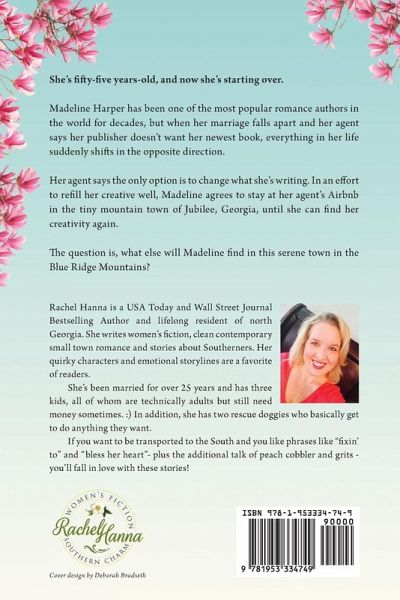 She's fifty-five years-old, and now she's starting over. Madeline Harper has been one of the most popular romance authors in the world for decades, but when her marriage falls apart and her agent says her publisher doesn't want her newest book, everything in her life suddenly shifts in the opposite direction. Her agent says the only option is to change what she's writing. In an effort to refill her creative well, Madeline agrees to stay at her agent's Airbnb in the tiny mountain town of Jubilee, Georgia, until she can find her creativity again. The question is, what else will Madeline find in this serene town in the Blue Ridge Mountains?