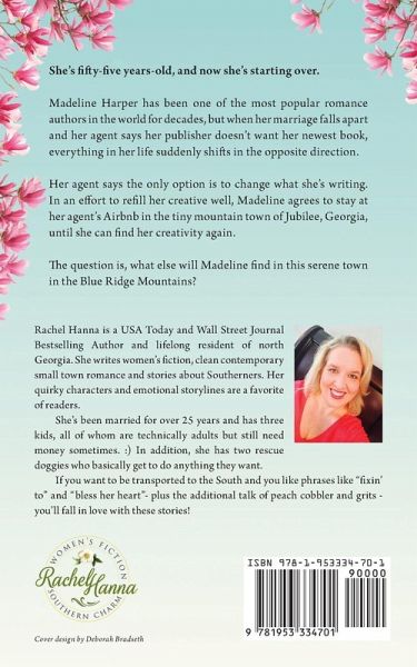 Madeline Harper has been one of the most popular romance authors in the world for decades, but when her marriage falls apart and her agent says her publisher doesn't want her newest book, everything in her life suddenly shifts in the opposite direction. Her agent says the only option is to change what she's writing. In an effort to refill her creative well, Madeline agrees to stay at her agent's Airbnb in the tiny mountain town of Jubilee, Georgia, until she can find her creativity again. The question is, what else will Madeline find in this serene town in the Blue Ridge Mountains?