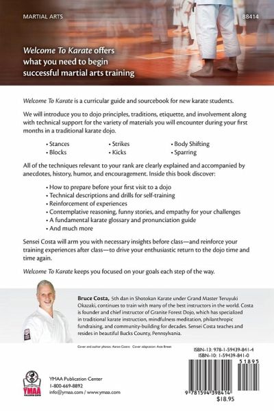 Welcome to Karate offers everything you need to know during the first six months of your karate practice. Offered as a curricular guide and sourcebook, it introduces the entirety of dojo involvement, emphasizing traditions and etiquette, and offering technical support for all elements required to advance from white to yellow belt.