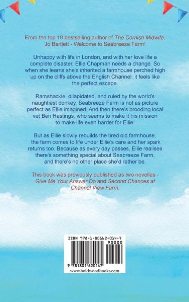 Another wonderful new series from the top 10 bestselling author of The Cornish Midwife, Jo Bartlett. Welcome to Seabreeze Farm. Unhappy with life in London, and with her love life a complete disaster, Ellie Chapman desperately needs a change. So when she learns she's inherited a farmhouse perched high up on the cliffs above the English Channel, it feels like the perfect escape. But ramshackle and dilapidated, and ruled by the world's naughtiest donkey, Seabreeze Farm is not as picture perfect as Ellie imagined. And then there's brooding local vet Ben Hastings, who seems to make it his mission to make life on the farm even harder for Ellie! With money tight, Ellie slowly rebuilds the tired old farmhouse. And as the farm comes to life under Ellie's care, Ellie's spark returns too. Because as every day passes, Ellie begins to realise that there is something special about Seabreeze Farm, and there's no other place she'd rather be. This book was previously published as two novellas - Give Me Your Answer Do and Second Chances at Channel View Farm. Praise for Jo Bartlett: 'I love second chance stories. I love returning home stories. So a book combining both is an absolute winner for me. The Cornish Midwife is simply gorgeous. Stunning setting, wonderful characters, and oozing with warmth. A triumph from Jo Bartlett.' Jessica Redland 'Perfectly written and set in the beating heart of a community, this story is a wonderful slice of Cornish escapism.' Helen J Rolfe