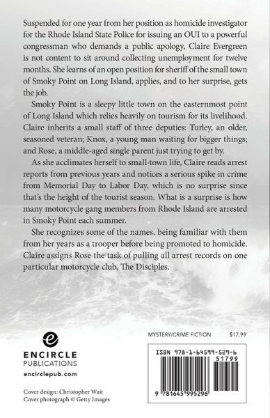 Suspended for one year from her position as homicide investigator for the Rhode Island State Police for issuing an OUI to a powerful congressman who demands a public apology, Claire Evergreen is not content to sit around collecting unemployment for twelve months. She learns of an open position for sheriff of the small town of Smoky Point on Long Island, applies, and to her surprise, gets the job. Smoky Point is a sleepy little town on the easternmost point of Long Island which relies heavily on tourism for its livelihood. Claire inherits a small staff of three deputies: Turley, an older, seasoned veteran; Knox, a young man waiting for bigger things; and Rose, a middle-aged single parent just trying to get by. As she acclimates herself to small-town life, Claire reads arrest reports from previous years and notices a serious spike in crime from Memorial Day to Labor Day, which is no surprise since that's the height of the tourist season. What is a surprise is how many motorcycle gang members from Rhode Island are arrested in Smoky Point each summer. She recognizes some of the names, being familiar with them from her years as a trooper before being promoted to homicide. Claire assigns Rose the task of pulling all arrest records on one particular motorcycle club, The Disciples.