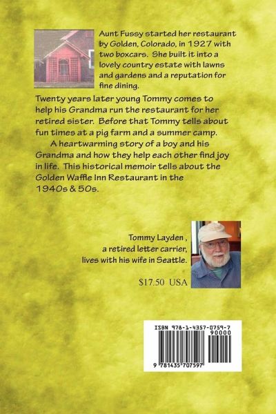 Aunt Fussy started her restaurant by Golden, Colorado, in 1927 with two boxcars and builds it into a lovely country estate with a reputation for fine dining. Twenty years later young Tommy comes to help his grandma run the restaurant and finds joy in life. A heart-warming historical memoir about the Golden Waffle Inn Restaurant 1940-60.