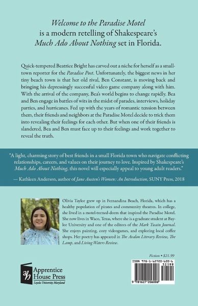 Welcome to The Paradise Motel is a modern retelling of Shakespeare's Much Ado About Nothing set in Florida. Quick-tempered Beatrice Bright has carved out a niche for herself as a small-town reporter for the Paradise Post. Unfortunately, the biggest news in her tiny beach town is that her old rival, Ben Constant, is moving back and bringing his depressingly successful video game company along with him. With the arrival of the company, Bea's world begins to change rapidly. Bea and Ben engage in battles of wits in the midst of parades, interviews, holiday parties, and hurricanes. Fed up with the…mehr