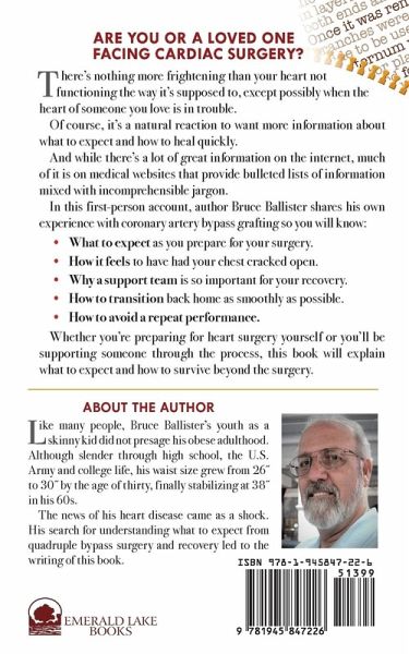 Are you or a loved one facing cardiac surgery? There’s nothing more frightening than when your heart isn’t functioning the way it’s supposed to, except possibly when the heart of someone you love is in trouble. Of course, it’s a natural reaction to want more information about what to expect and how to heal quickly. And while there’s a lot of great information on the internet, much of it is on medical websites that provide bulleted lists of information mixed with incomprehensible jargon. In this first-person account, author Bruce Ballister shares his own experience with coronary artery bypass grafting so that you will know: What to expect as you prepare for your surgery. How it feels to have had your chest cracked open. Why a support team is so important for your recovery. How to transition back home as smoothly as possible. And most importantly, what you need to do to avoid a repeat performance. Whether you’re preparing for heart surgery yourself or you’ll be supporting someone through the process, this book will explain what to expect and how to survive beyond the surgery.