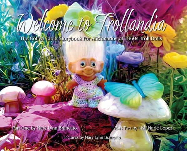 Welcome to Trollandia is TWO books inside one cover! Part 1, "Who's Who of Trollandia", introduces the reader to some of the community's most notable residents. Get to know them and learn about their many talents, accomplishments and backgrounds. Trolls are incredibly honest, funny, smart and so darned sweet. Most trolls possess remarkable moral character, although a few are a little feisty. They are not angels. The characters are especially relatable to children of the 1960s and 70's, the years the featured trolls were manufactured. In Part 2, "Riding the Rainbow", we get to know Lizzie and her two best friends, Stella and Katie. They are off on another adventure in Troll Town. Only this time, there is a problem: Lizzie has lost her beloved bear, Snickerdoodles! Join the magical journey with these giggly trolls as they search for Snickerdoodles, skipping through fields of love posies, chasing after rainbows, and meeting old and new friends. Nearly half of the book's approximately 120+ pages are big, glorious color pictures, and nearly half contain delectably sweet and smile inducing stories. It's the perfect coffee table book for troll-loving kindred spirits. (We know who we are.)