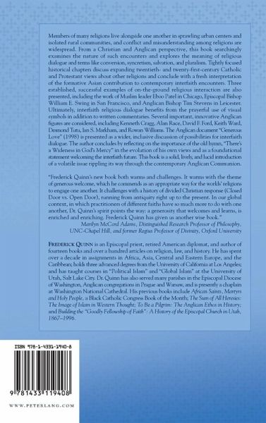 Members of many religions live alongside one another in sprawling urban centers and isolated rural communities, and conflict and misunderstanding among religions are widespread. From a Christian and Anglican perspective, this book searchingly examines the nature of such encounters and explores the meaning of religious dialogue and terms like conversion, syncretism, salvation, and pluralism. Tightly focused historical chapters discuss expanding twentieth- and twenty-first-century Catholic and Protestant views about other religions and conclude with a fresh interpretation of the formative Asian contribution to contemporary interfaith encounters. Three established, successful examples of on-the-ground religious interaction are also presented, including the work of Muslim leader Eboo Patel in Chicago, Episcopal Bishop William E. Swing in San Francisco, and Anglican Bishop Tim Stevens in Leicester. Ultimately, interfaith religious dialogue benefits from the prayerful use of visual symbols in addition to written commentaries. Several important, innovative Anglican figures are considered, including Kenneth Cragg, Alan Race, David F. Ford, Keith Ward, Desmond Tutu, Ian S. Markham, and Rowan Williams. The Anglican document "Generous Love" (1998) is presented as a wider, inclusive discussion of possibilities for interfaith dialogue. The author concludes by reflecting on the importance of the old hymn, "There's a Wideness in God's Mercy" in the evolution of his own views and as a foundational statement welcoming the interfaith future. This book is a solid, lively, and lucid introduction of a volatile issue rippling its way through the contemporary Anglican Communion.