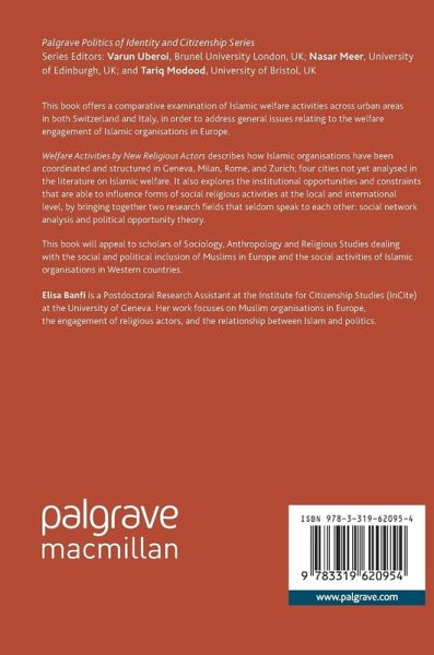 Welfare Activities by New Religious Actors describes how Islamic organisations have been coordinated and structured in Geneva, Milan, Rome, and Zurich; four cities not yet analysed in the literature on Islamic welfare. It also explores the institutional opportunities and constraints that are able to influence forms of social religious activities at the local and international level, by bringing together two research fields that seldom speak to each other: social network analysis and political opportunity theory.
