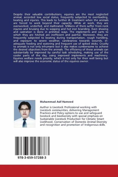 Despite their valuable contributions, equines are the most neglected animal, accorded low social status, frequently subjected to overloading, beating and injuries. This leads to further ill- treatment when the animals are forced to work beyond their capacity. While at work, they are overworked, underfed, and maltreated. Millions of them suffer from neck injuries and bruising due to wipping and hot iron branding. Even shoeing and castration is done in primitive ways. The implements and carts to which they are hitched are inefficient and painful. Moreover, they are frequently subjected to beating during transportation, rough handling, and exposure to severe weather, carelessness towards wounds, in-adequate feeding and watering and frequent use of spiked sticks. Cruelty to animals is not only inhumane but it also makes cumbersome to achieve the desired objectives from the animals. The efficiency of these animals can substantially be improved by careful task scheduling, making use ofthe cooler parts of the day, using improved implements and machinery. Equines welfare needs priority, which is not only for their well being but will also improve the economic status of the equines owner.