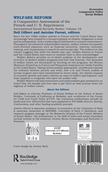 1: Poverty and Work in the United States and France 1: Social Policy for the Working Poor: U.S. Reform in a Cross-National Perspective * 2: Applying the U.S. Bureau of Labor Statistics Concept of the "Working Poor" to France * 2: Development and Structure of Welfare Policies Welfare Reform 3: Welfare Policy in the United States: The Road from Income Maintenance to Workfare 4: Income Support Policy in France 5: Workfare and Insertion : How the U.S. and French Models of Social Assistance Have Been Transformed 3: The Evaluations of U.S. Welfare Reforms and Their Implications 6: Assessing Welfare Reform in the United States * 7: Work, Welfare, and Economic Well-Being After Welfare Reform: Do State Policies Make a Difference? 8: Issues in the Design and Evaluation of U.S. Welfare Reforms 4: The Relationship between Economic Growth and Poverty 9: Welfare Reform, Economic Growth, and Poverty in the U.S. 10: Growth and Poverty in France 5: Work-Oriented Reforms: How Well Do They Work? 11: Leaving Welfare without Working: How Do Mothers Do It? And What Are the Implications? 12: The Static vs. Dynamic Inactivity Trap on the Labor Market: Revisiting the "Making Work Pay" Issue