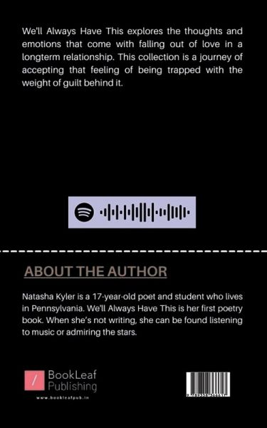 Natasha Kyler is a 17yearold poet and student who lives in Pennsylvania. We'll Always Have This is her first poetry book. When she's not writing, she can be found listening to music or admiring the stars.