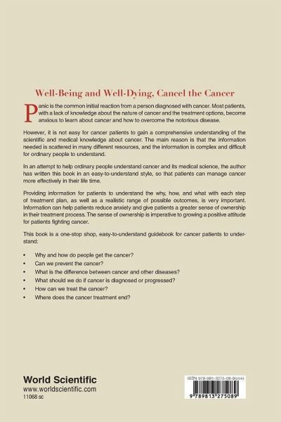 Panic is the common initial reaction from a person diagnosed with cancer. Most patients, with a lack of knowledge about the nature of cancer and the treatment options, become anxious to learn about cancer and how to overcome the notorious disease. However, it is not easy for cancer patients to gain a comprehensive understanding of the scientific and medical knowledge about cancer. The main reason is that the information needed is scattered in many different resources, and the information is complex and difficult for ordinary people to understand. In an attempt to help ordinary people understand cancer and its medical science, the author has written this book in an easy-to-understand style, so that patients can manage cancer more effectively in their life time. Providing information for patients to understand the why, how, and what with each step of treatment plan, as well as a realistic range of possible outcomes, is very important. Information can help patients reduce anxiety and give patients a greater sense of ownership in their treatment process. The sense of ownership is imperative to growing a positive attitude for patients fighting cancer. This book is a one-stop shop, easy-to-understand guidebook for cancer patients to understand: Why and how do people get the cancer? Can we prevent the cancer? What is the difference between cancer and other diseases? What should we do if cancer is diagnosed or progressed? How can we treat the cancer? Where does the cancer treatment end?
