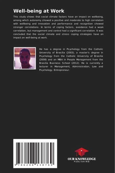 This study shows that social climate factors have an impact on wellbeing, among which autonomy showed a positive and moderate to high correlation with wellbeing and innovation and performance and recognition showed stronger correlations. In terms of coping factors, avoidance had a weak correlation, but management and control had a significant correlation. It was concluded that the social climate and stress coping strategies have an impact on well-being at work.