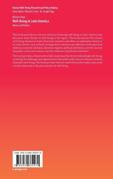 This book provides an overview of factors fostering well-being in Latin America and discusses many threats to well-being in the region. The book assesses the current well-being situation in Latin American countries and offers an explanation based on its many drivers, such as family arrangements, kindness and affection of interpersonal relations, economic situation, education regimes, political institutions, poverty, income inequality, crime and violence, and the weakness of political institutions.