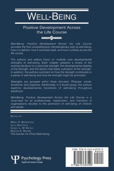 This volume derived from original presentations given at a conference in Atlanta, Georgia, under the auspices of the Center for Child Well-Being. Scholars, practitioners, public health professionals, and principals in the child development community convened to address a science-based framework for elements of well-being and how the elements might be developed across the life course. Integrating physical, cognitive, and social-emotional domains, Well-Being is the first scientific book to consider well-being holistically. Focusing on a set of core strengths grouped within these three domains, the book also includes a fourth section on developmental strengths through adulthood that broadly examines a continuum of health and development, as well as transitions in well-being. This volume takes a developmental perspective across the life course, describing foundational strengths for well-being--the capacities that can be actively developed, supported, or learned. These foundational strengths--problem solving, emotional regulation, and physical safety--are the positive underpinnings of early child health and development, as well as ongoing well-being across the life course. Working together and blending their respective disciplinary perspectives and expertise, 53 experts in psychology, sociology, child development, and medicine have contributed to the book.