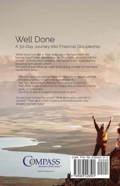 Well Done A 30-Day Journey into Financial Discipleship "What would you like to hear Jesus say when you meet Him face-to-face?" Many people answer, "Well done, good and faithful servant," echoing Jesus' praise of the servants who multiplied the resources entrusted to them. This book shares what we ought to be doing, in order to hear these words from Jesus. Part One gives us a perspective on accountability, treasures in heaven, eternal rewards and how to live in the light of eternity. Part Two discusses multiplying financial fruit in our lives. Part Three leads us into how to multiply the resources God has given us to manage. Part Four is about multiplying financial disciples. Do you want to hear the words, "Well done, good and faithful servant?" Then dig into this inspiring and practical book and prepare yourself today!