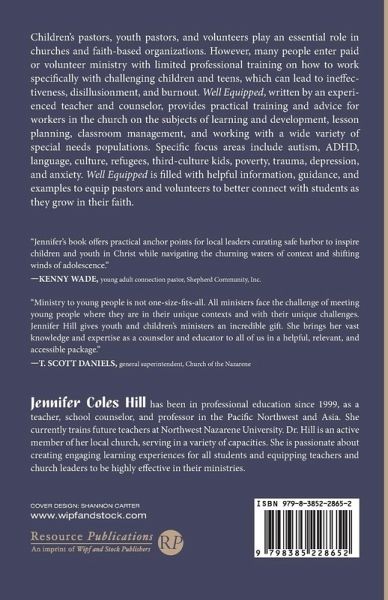 Children's pastors, youth pastors, and volunteers play an essential role in churches and faith-based organizations. However, many people enter paid or volunteer ministry with limited professional training on how to work specifically with challenging children and teens, which can lead to ineffectiveness, disillusionment, and burnout. Well Equipped, written by an experienced teacher and counselor, provides practical training and advice for workers in the church on the subjects of learning and development, lesson planning, classroom management, and working with a wide variety of special needs populations. Specific focus areas include autism, ADHD, language, culture, refugees, third-culture kids, poverty, trauma, depression, and anxiety. Well Equipped is filled with helpful information, guidance, and examples to equip pastors and volunteers to better connect with students as they grow in their faith.