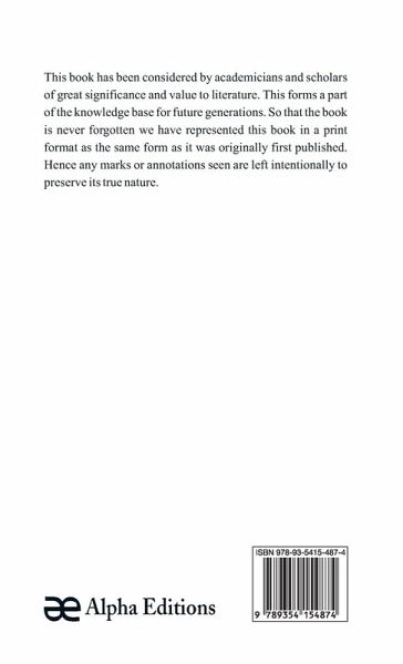 This book has been considered by academicians and scholars of great significance and value to literature. This forms a part of the knowledge base for future generations. So that the book is never forgotten we have represented this book in a print format as the same form as it was originally first published. Hence any marks or annotations seen are left intentionally to preserve its true nature.