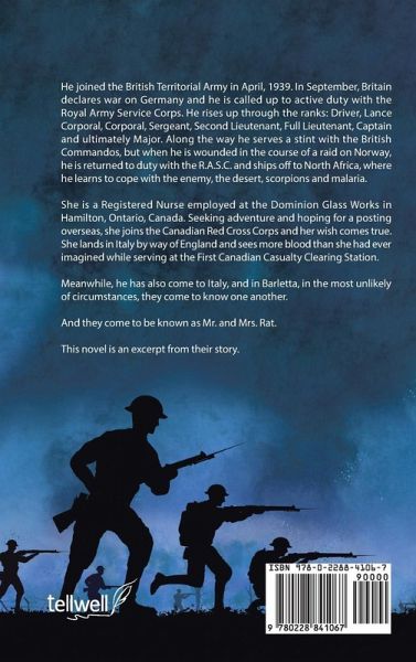 He joined the British Territorial Army in April, 1939. In September, Britain declares war on Germany and he is called up to active duty with the Royal Army Service Corps. He rises up through the ranks: Driver, Lance Corporal, Corporal, Sergeant, Second Lieutenant, Full Lieutenant, Captain and ultimately Major. Along the way he serves a stint with the British Commandos, but when he is wounded in the course of a raid on Norway, he is returned to duty with the R.A.S.C. and ships off to North Africa, where he learns to cope with the enemy, the desert, scorpions and malaria. She is a Registered Nurse employed at the Dominion Glass Works in Hamilton, Ontario, Canada. Seeking adventure and hoping for a posting overseas, she joins the Canadian Red Cross Corps and her wish comes true. She lands in Italy by way of England and sees more blood than she had ever imagined while serving at the First Canadian Casualty Clearing Station. Meanwhile, he has also come to Italy, and in Barletta, in the most unlikely of circumstances, they come to know one another. And they come to be known as Mr. and Mrs. Rat. This novel is an excerpt from their story.