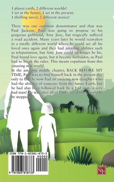 2 entirely different worlds, one planet earth! One set in the future, one set in the present. 1 thrilling novel, 2 different stories! There was one common denominator and that was Paul Jackson. Paul was going to suffer a terrible road accident when he was just about to propose to his gorgeous girlfriend,Amy Jane only to find himself waking up many years into the future to be greeted by his loved ones again but now they had changed, they were different, they had amazing new abilities such as teleportation. The earth was now a glorious paradise and all the wicked people had gone as God was now the ruler. It was called the new order. Paul found he could not have Amy Jane as his girlfriend anymore as she was now married to his son!. A devastated Paul had to find another love,and he did, but Laura was a rebel who couldn't accept male authority, so the ruling righteous designated Paul had to be with someone already chosen for him instead of her.Paul loved Laura and couldn't do it so he disobeyed them and they defiantly absconded together, making love in the process. The authorities caught up with them and the punishment was expulsion from the new order by electrocution. Back in the present day, Paul Jackson was slowly coming back to life in his hospital bed via a defibrillator with his loved ones all around him. Paul had been saved by a passing nurse called Laura who had given him crucial CPR which had bought him back from the dead as he lay dying on the road, but Paul was to find the world he had come back to was not the same as the one he had left. He had gained an amazing new daughter who had all the abilities of someone from the new order but he had also been followed back by a bad man, a very bad man! All his loved ones were now in danger as the bad man was after them, who was he? Could he be stopped?