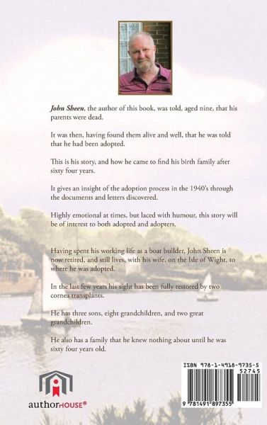 John Sheen, the author of this book, was told, aged nine, that his parents were dead. It was then, having found them alive and well, that he was told that he had been adopted. This is his story, and how he came to find his birth family after sixty four years. It gives an insight of the adoption process in the 1940's through the documents and letters discovered. Highly emotional at times, but laced with humour, this story will be of interest to both adopted and adopters. Having spent his working life as a boat builder, John Sheen is now retired, and still lives, with his wife, on the Isle of Wight, to where he was adopted. In the last few years his sight has been fully restored by two cornea transplants. He has three sons, eight grandchildren, and two great grandchildren. He also has a family that he knew nothing about until he was sixty four years old.