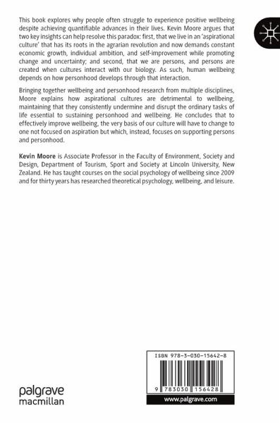 This book addresses the paradox that, despite quantifiable advances, people often struggle to experience positive wellbeing. Kevin Moore argues that two key insights can help resolve this paradox: first, that we live in an 'aspirational culture' that has its roots in the agrarian revolution and now demands constant economic growth, individual ambition, and self-improvement while promoting change and uncertainty; and second, that we are persons, and persons are created when cultures interact with our biology. Accordingly, our wellbeing depends on how personhood develops through that interaction.