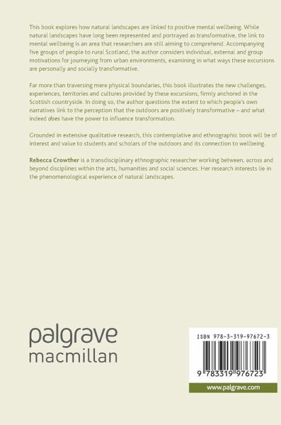 This book explores how natural landscapes are linked to positive mental wellbeing. While natural landscapes have long been represented and portrayed as transformative, the link to mental wellbeing is an area that researchers are still aiming to comprehend. Accompanying five groups of people to rural Scotland, the author considers individual, external and group motivations for journeying from urban environments, examining in what ways these excursions are personally and socially transformative.