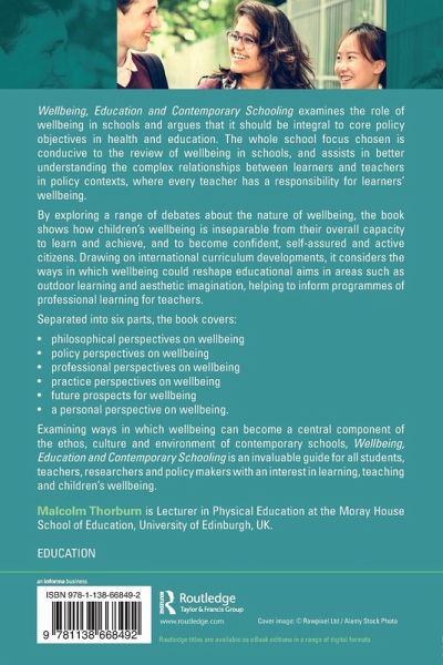 Wellbeing, Education and Contemporary Schooling examines the role of wellbeing in schools and argues that it should be integral to core policy objectives in health and education. The whole school focus chosen is conducive to the review of wellbeing in schools, and assists in better understanding the complex relationships between learners and teachers in policy contexts, where every teacher has a responsibility for learners' wellbeing. By exploring a range of debates about the nature of wellbeing, the book shows how a child's wellbeing is inseparable from their overall capacity to learn and achieve, and to become confident, self-assured and active citizens. Drawing on international curriculum developments, it considers the ways in which wellbeing could reshape educational aims in areas such as outdoor learning and aesthetic imagination, helping to inform programmes of professional learning for teachers. Separated into six parts, the book covers: philosophical perspectives on wellbeing policy perspectives on wellbeing professional perspectives on wellbeing practice perspectives on wellbeing future prospects for wellbeing a personal perspective on wellbeing. Examining ways in which wellbeing can become a central component of the ethos, culture and environment of contemporary schools, Wellbeing, Education and Contemporary Schooling is an invaluable guide for all students, teachers, researchers and policy makers with an interest in learning, teaching and children's wellbeing.