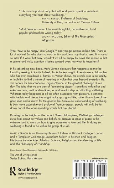 Argues that positive psychology has overlooked and sidelined the ancient wisdom on wellbeing, notably from the Greek philosophers. This work shows that wellbeing is not found in a focus on pleasure, or even the pursuit of happiness itself. Rather, it is a question of meaning and responding to the great challenge: the search for transcendence.