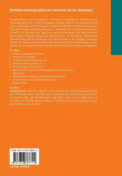In diesem Buch wird der Begriff der Welle auf der Grundlage der Verhältnisse von Spannung und Strom auf der homogenen Leitung und beim Zusammenspiel der realen Spannungs- bzw. Stromquelle mit der Last definiert. Darauf aufbauend erfolgt die Wellenbeschreibung elektrischer Netzwerke mit der Streumatrix sowohl bezüglich des harmonischen Signals als auch des Rauschens. Ziele sind optimierte Leistungsübertragung und geringes Eigenrauschen. Die behandelte differenzielle Signalführung und Beschreibung sowie Messtechnik ist bei heutigen Packungsdichten in elektronischen Geräten und den hohen EMV-Anforderungen unverzichtbar. Im Anhang werden die Streumatrizen wesentlicher Netzwerke angegeben.