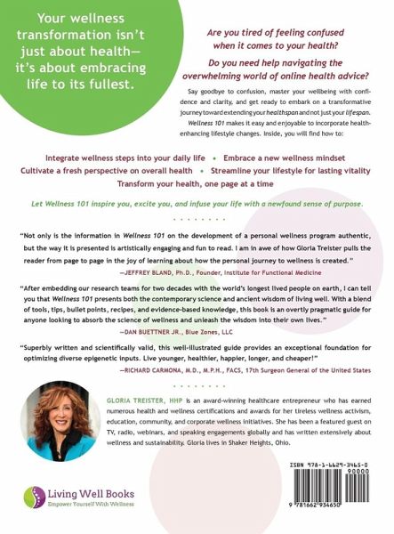 Gloria Treister: A Visionary Champion of Wellness¿ Meet Gloria Treister, HHP, the remarkable force behind Wellness Evolution and the visionary author of "Wellness 101: Simple Steps to Good Health." Gloria's journey is a testament to the power of unwavering commitment and a relentless pursuit of wellness excellence.¿ A Pioneer in Wellness ¿Gloria is not your typical wellness expert. She's a distinguished healthcare entrepreneur and practitioner with an unparalleled track record in the wellness industry. Her journey has been marked by an unshakable dedication to promoting wellness services, programs, education, and corporate wellness initiatives that make sense and are easily implemented.¿ A Legacy of Excellence¿ Gloria's outstanding contributions have not gone unnoticed. Her wall of achievements includes numerous practitioner and coaching certifications, as well as prestigious business accolades. She's even been celebrated as one of the top 10 Women Business Owners in Northeast Ohio and won the Better Business Bureau's Excellence in Consumer Education award. Her career spans decades, marked by groundbreaking initiatives and a relentless passion for transformative wellness.¿ A Visionary at Heart ¿In 2003, Gloria launched Wellness Evolution, a bold endeavor born out of her visionary outlook. At a time when wellness was a seldom-discussed topic, Gloria saw the need for a proactive approach to health. She dared to question the conventional wisdom that one had to be "broken" before seeking care and then trying to "fix" it. She challenged the status quo and set out to reshape the way we approach our health as the CEOs of our own health and wellbeing. A Global Influencer¿ Gloria's influence transcends borders. She's a sought-after guest on television, radio, and at personal speaking engagements, sharing her expertise with a global audience. Her extensive body of written work serves as a testament to her unwavering commitment to educating and inspiring others.¿ A Lifelong Learner and Teacher¿ Gloria's dedication to learning and teaching knows no bounds. Her impressive list of qualifications includes Board Certification as a Holistic Health Practitioner, Advanced Physical Fitness Specialist, Reiki Master, Certified Elemental Reflexologist, and EMCC Certified Executive and Business Coach, Corporate Wellness Specialist, among others.¿ A World Ambassador for Wellness¿ Representing the United States on the world stage, Gloria serves as an Ambassador for both Global Wellness Day and World Wellness Weekend. She's an active member of the Wellbeing at Work Initiative for the Global Wellness Institute and a Delegate to the Global Wellness Summit.¿ A Transformational Author ¿As she releases her new book, "Wellness 101® Simple Steps to Good Health," Gloria is poised to leave an indelible mark on the wellness landscape. Her book is a beacon of clarity amid the "Dr. Google" information overload epidemic. It untangles the web of confusing and conflicting health information, making wellness easy to understand and implement for everyone.¿ A Catalyst for Change ¿Gloria Treister's fervor for teaching and her unwavering commitment to wellness continue to inspire and empower individuals worldwide. She's not just an advocate; she's a visionary leader, guiding us towards a healthier, happier, and more fulfilled life. Are you ready to embark on a transformative wellness journey with Gloria? Join her and discover an uncomplicated path to a healthier, happier you through "Wellness 101: Simple Steps to Good Health." It's time to embrace the wellness revolution! Buy a copy today for yourself and one for a loved one.