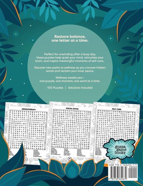 Restore Balance One Letter at a Time Unlock the secrets to a calmer, healthier, and more balanced life with this beautifully designed wellness word search collection. Featuring 100 unique puzzles, each filled with carefully chosen words that offer practical tips and inspiration for integrating wellness and self care into your life, this book is an ideal companion for anyone seeking relaxation, balance, and personal growth. Key Features:100 wellness-themed word searches with over 1800 inspiring words Engaging themes include mindfulness, nutrition, self-care, holistic health, and more Easy-to-read, large print format suitable for all ages Hours of peaceful, brain-boosting entertainment Perfect gift for friends, family, or anyone on a wellness journey Embrace wellness, enhance your mood, and nurture your mind-one word search at a time.