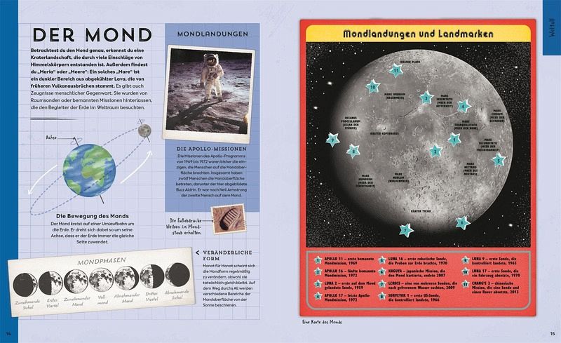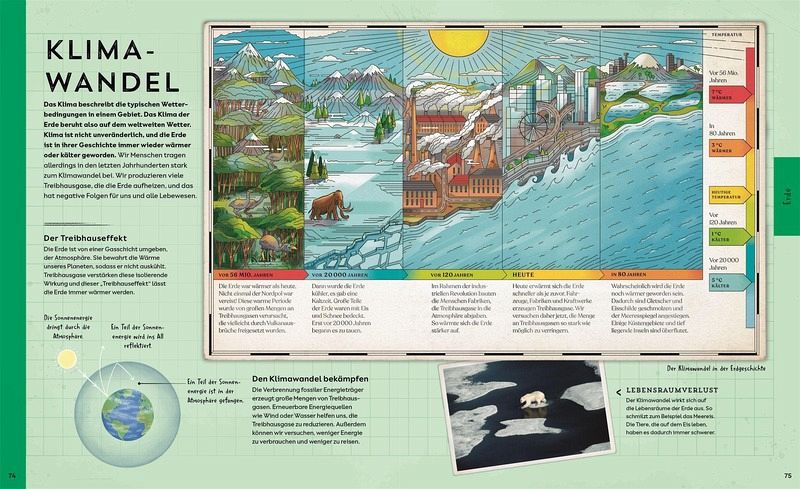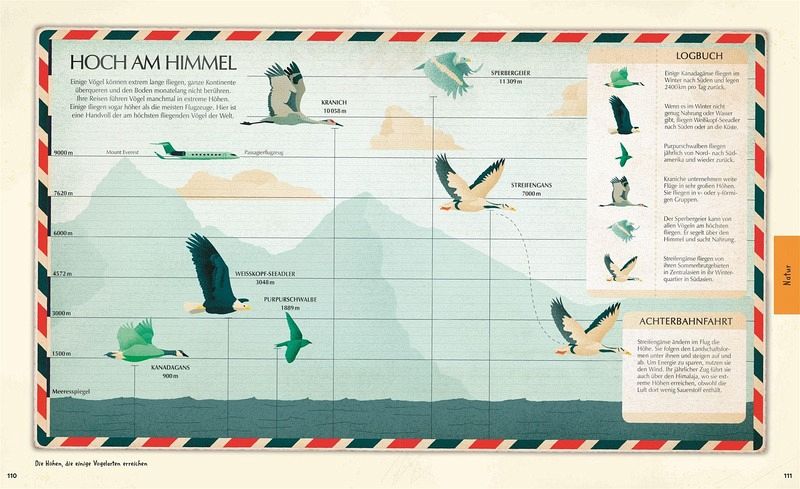 Von der kleinsten Körperzelle bis zu den Weiten des Weltalls: Jedes Thema wird spannend und innovativ z.B. mit einer Landkarte, einem Zeitstrahl, Poster oder einer Skizze erklärt. Wer einmal hineingeblättert hat, will dieses außergewöhnliche Kindersachbuch gar nicht wieder aus der Hand legen, so viel gibt es auf jeder Seite zu entdecken: zum Beispiel einen Bienenstock von innen, Vögel, die höher fliegen als ein Düsenjet, oder eine Weltkarte, die zeigt, wie und wo das Internet entstand. Die Karten, Querschnitte und Schaubilder sind wunderschön verspielt und nostalgisch gestaltet und machen so viel Spaß, dass die Fakten von ganz allein im Kopf bleiben. Ein innovatives Kindersachbuch voller Allgemeinwissen - zudem ein richtig cooles Geschenk.